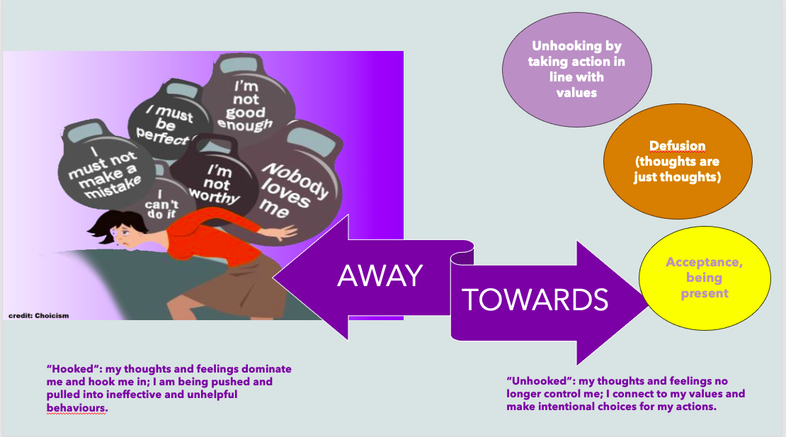 When we are struggling, we may be engaging in behaviour that takes us away from our values and gets us “hooked” in this ineffective loop.